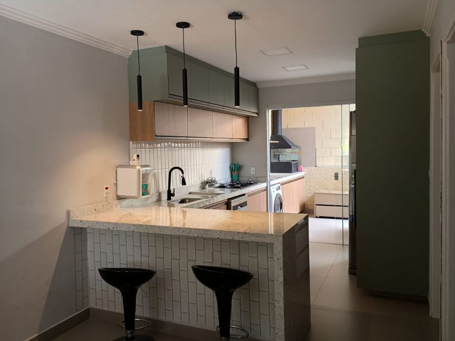 Repleta em Armários, Persianas, Garagem Coberta para dois veículos, Piso em Porcelanato.