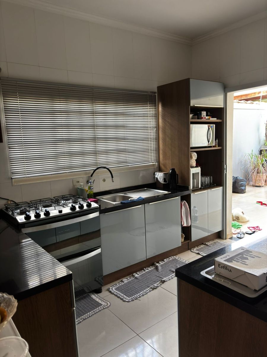 03 dormitórios sendo 01 suíte com closet e armários, sala para dois ambientes, 02 banheiros, cozinha com armários, área de serviço, quintal com churrasqueira, 02 vagas de garagem cobertas.
