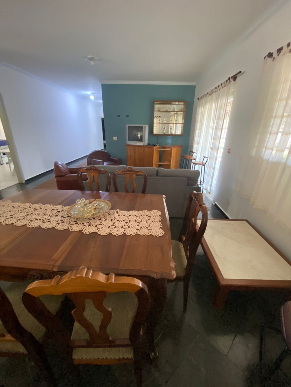São Duas Casas sendo a de Caseiro com 02 Dormitórios, Sala, Cozinha, Banheiro e Área de Serviço, já a Casa pricipal com 03 Dormitórios sendo 01 Suite, Sala de TV, Jantar e Estar, toda Avarandada, Cozinha, Banheiro Social, área gourmet na própria casa, no Salão de festas possui dois banheiros, uma sauna, churrasqueira e forno a lenha, piscina e pomar